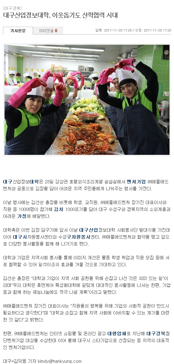 [언론보도] 대구산업정보대학, 이웃돕기도 산학협력 시대 2012-01-02 |