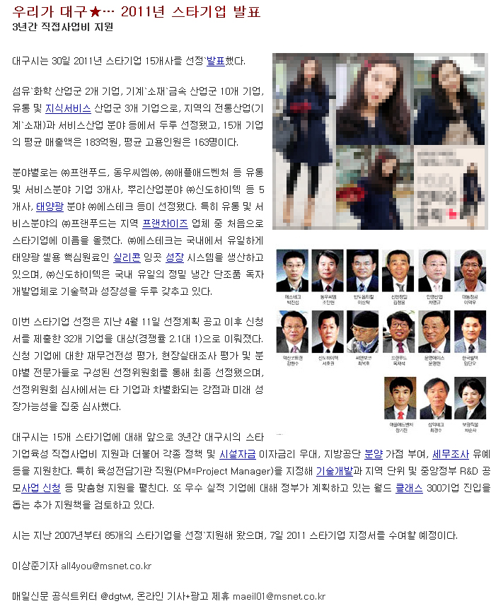 [언론보도] 우리가 대구★ 2011년 스타기업 선정