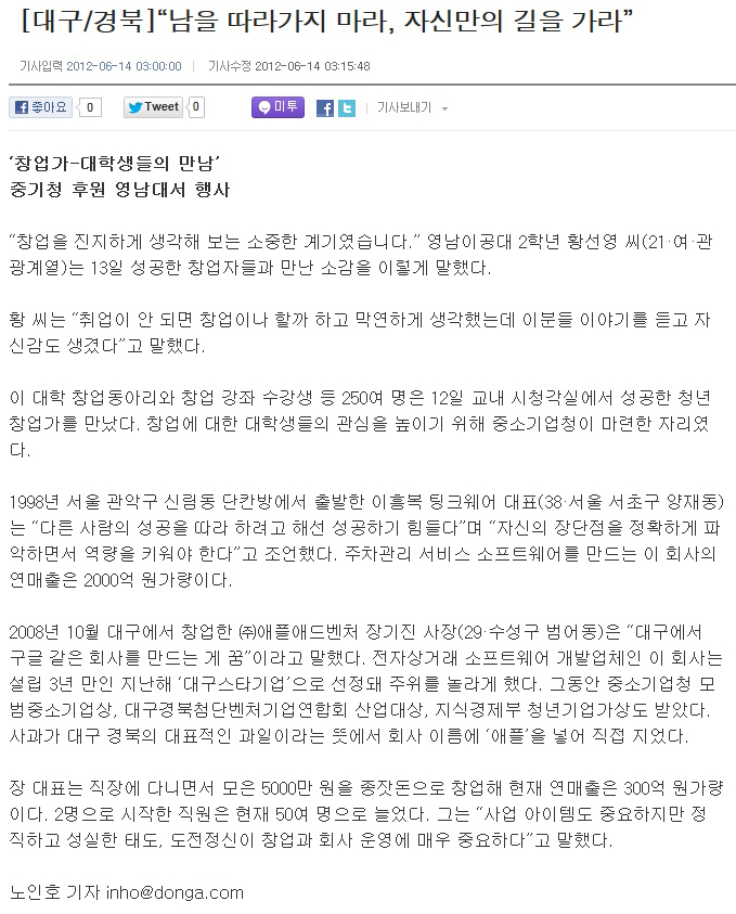 대구대, 장기진 (주)애플애드벤처 대표 초청 특강