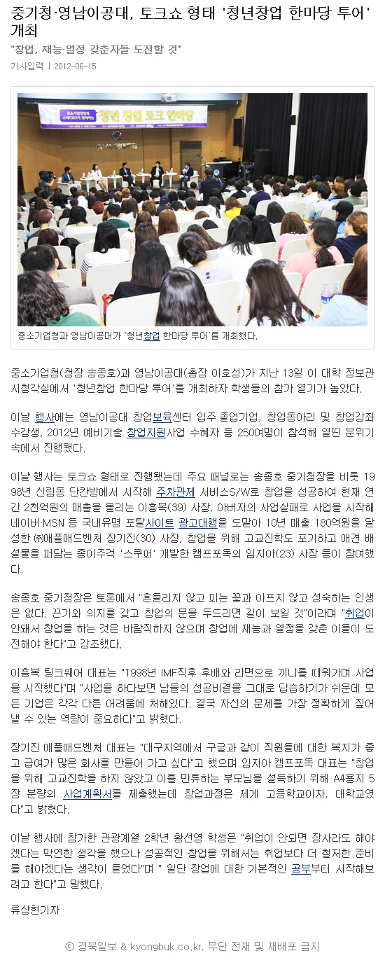[언론보도] 중기청·영남이공대, 토크쇼 형태
