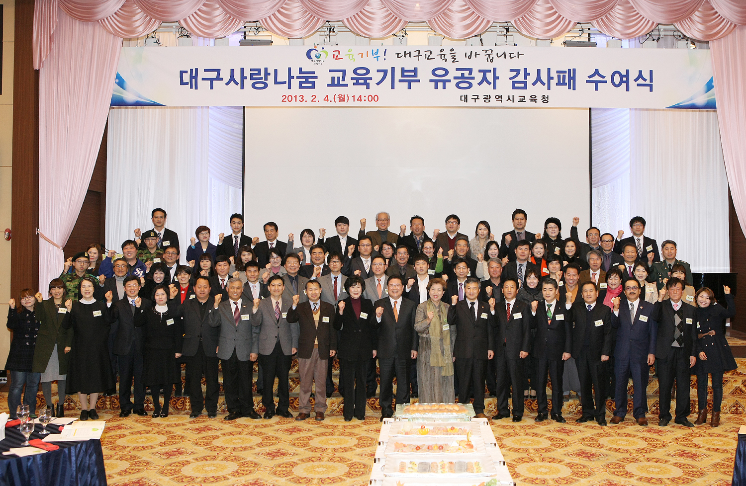 2013.02.04 웨딩아테네 컨벤션홀에서 진행된 "대구사랑나눔 교육기부 유공자 감사패 수여식" (사진자료 출처 : 대구광역시교육청 교육기부센터) |